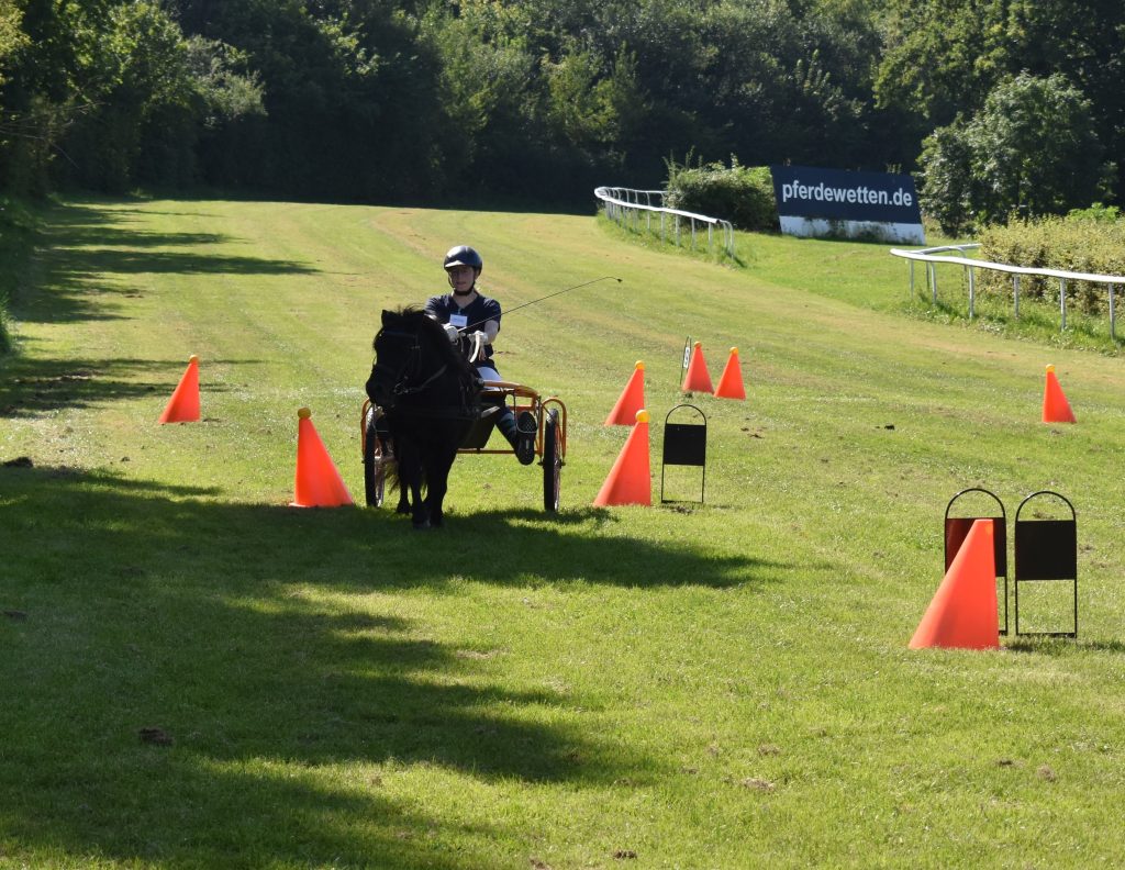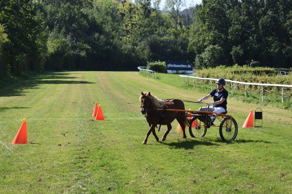Unser Dank geht auch an Oda, eine Mutti unserer Shetty-Freizeit Kids. Sie kann zwar reiten, saß aber vorher noch nie auf einem Sulky, trotzdem bot sie ihre Hilfe an. Nach 2-3 Übungsstunden mit dem Sulky bei uns in den Feldern, hieß es dann in Bad Harzburg prämiere für sie.