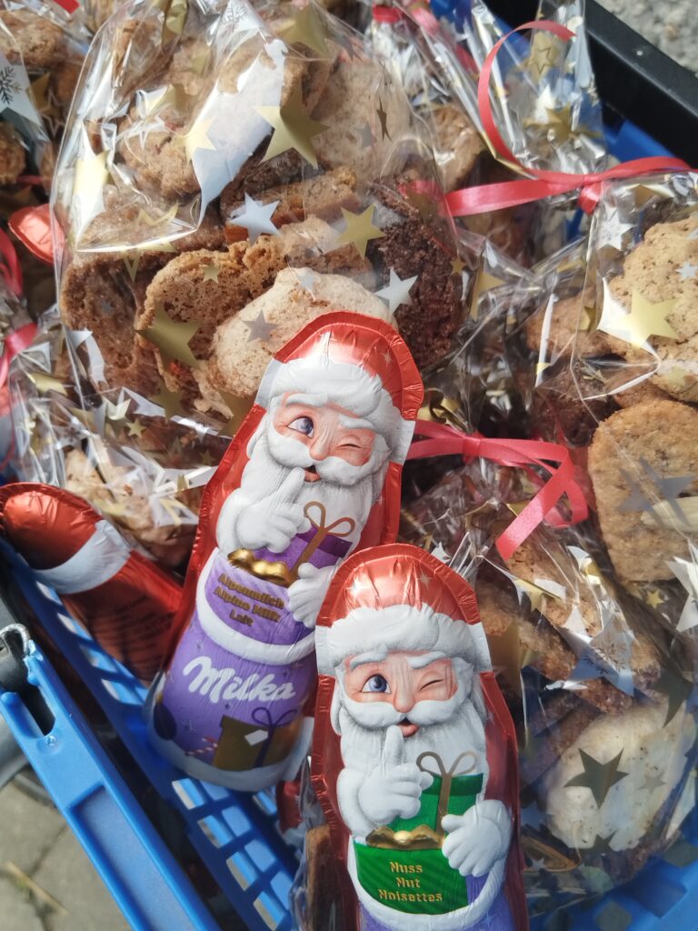 Alle Kids inkl. Eltern und Geschwistern bringen Kinderpunsch, Kekse, Gebäck und Glühwein mit. Dann wird gefuttert, Punsch getrunken, gequatscht und getobt. Selbstverständlich gibt es auch eine kleine Bescherung für die Kinder.